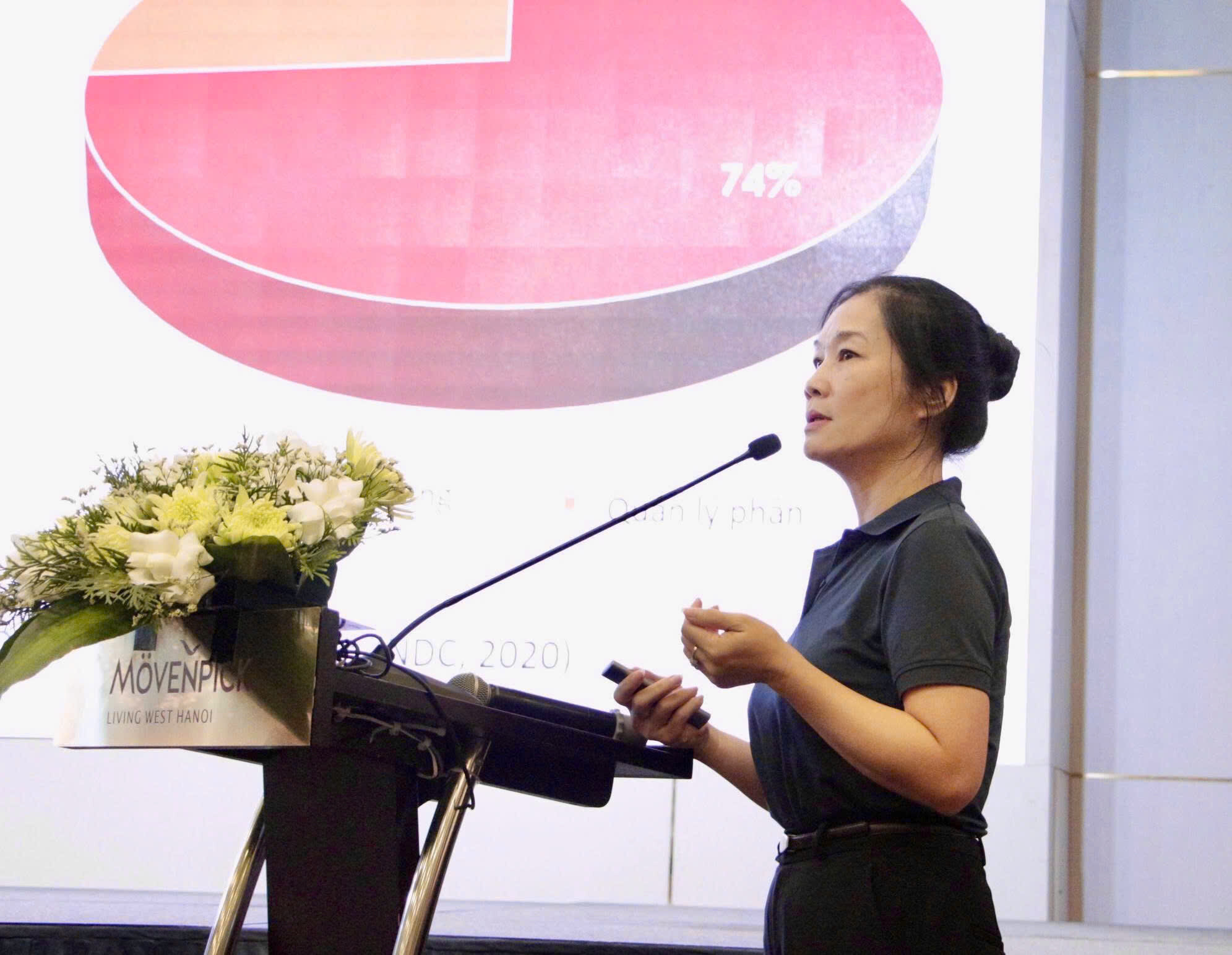 TS Lê Thị Thanh Huyền, Trưởng bộ môn nghiên cứu Hệ thống và Môi trường chăn nuôi, Viện Chăn nuôi trình bày mục tiêu giảm phát thải khí mê tan trong lĩnh vực chăn nuôi