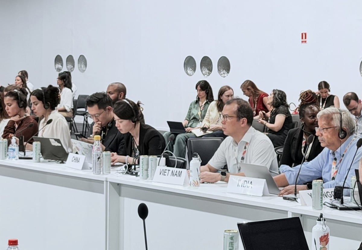 Đại diện Đoàn Việt Nam tham dự phiên đàm phán về Đánh giá nỗ lực toàn cầu. Ảnh: Chu Hương.