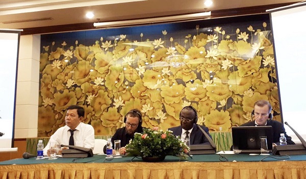 (Từ trái sang phải) TS. Trương Đức Trí, Phó cục trưởng Cục Biến đổi khí hậu, ông Jay Malette (UNDP), ông Dominique Relvet và ông William Aguemang Bonsu (Ban Thư ký UNFCCC) đồng chủ trì Hội thảo