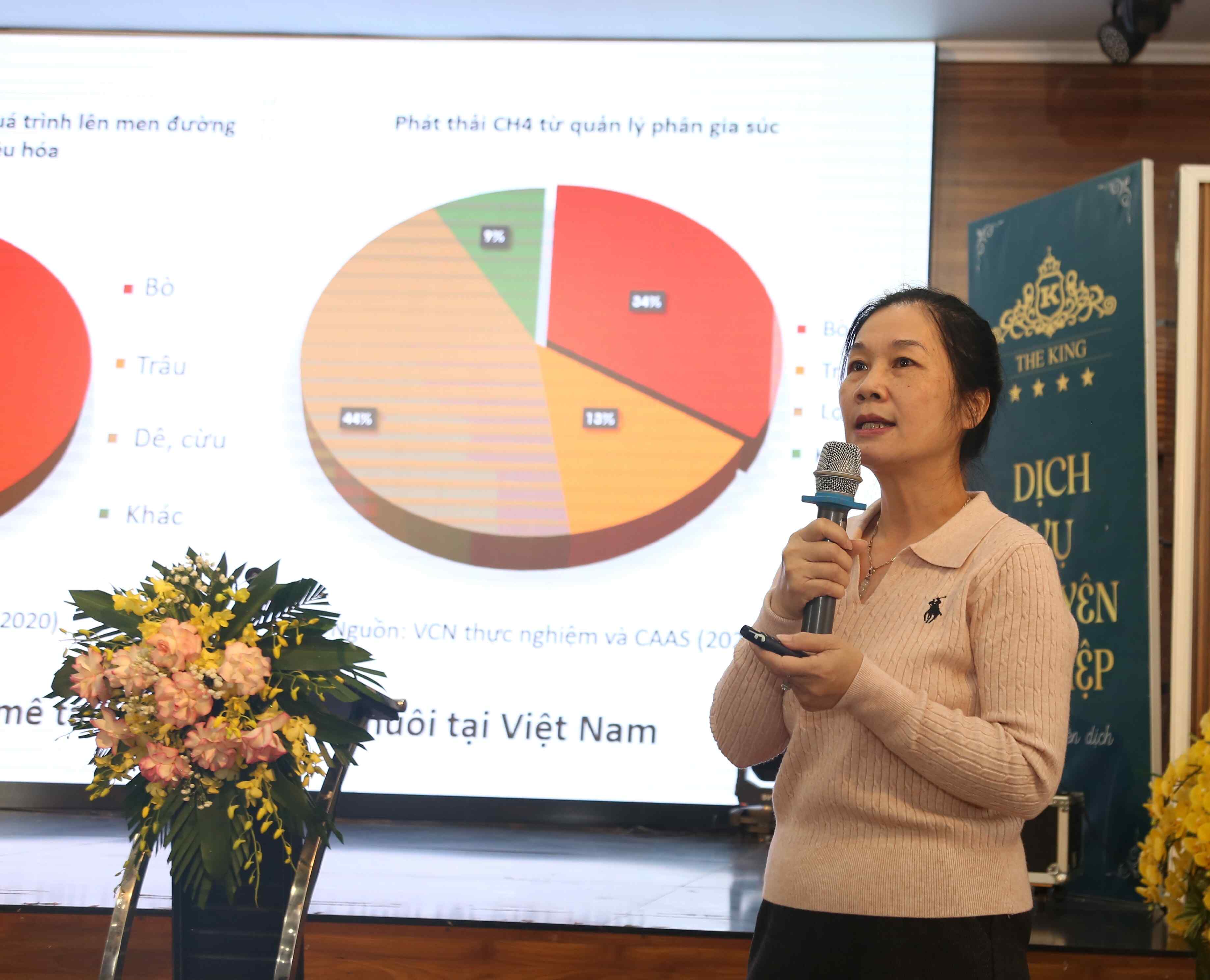 PGS.TS. Lê Thị Thanh Huyền, Trưởng Bộ môn nghiên cứu Hệ thống và Môi trường chăn nuôi, Viện Chăn nuôi, Bộ NN&MT chia sẻ các giải pháp piảm phát thải khí mê-tan trong lĩnh vực chăn nuôi
